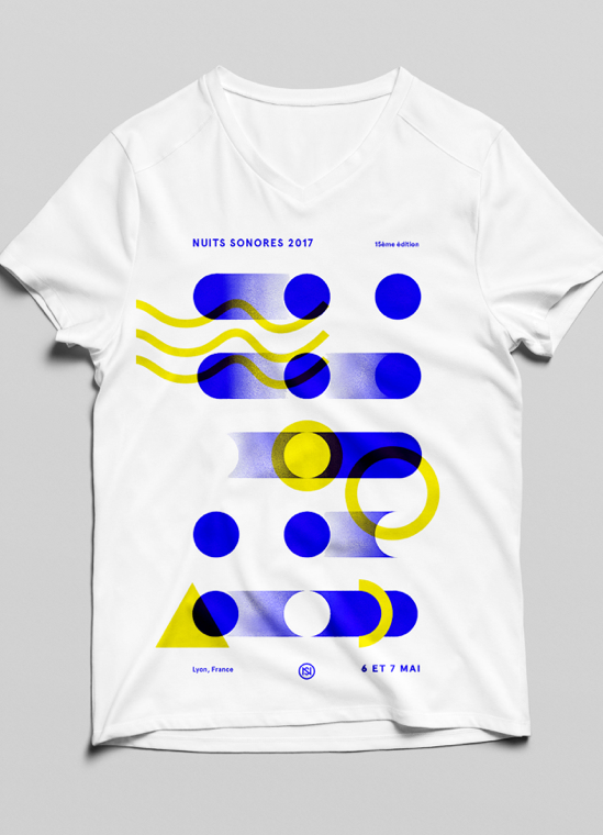 Nuits sonores étant un festival de musique électronique, le choix du design s’est porté sur une palette de couleurs électriques : le bleu et le jaune.L’affiche est composée de 5 formes avec 3 niveaux. Les 5 formes représentant les 5 jours du festival et les 3 niveaux, les 3 moments de la journée (le matin, le midi et le soir), chacuns s’animant de manière différente.Cette affiche se veut rythmée et originale pour représenter au mieux ce festival lyonnais.